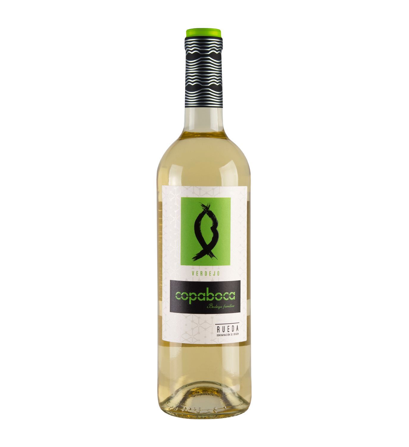 Verdejo 100% DO Rueda. Es el verdejo emblema de Bodegas Copaboca, los viñedos se encuentran en la zona más cálida de la Reserva Natural Vega del Duero-Riberas de Castronuño. Las características especiales del suelo y del clima hacen que Copaboca sea un vino muy fresco en boca. De tonos amarillos y verdosos.
